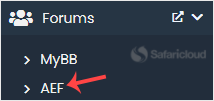 4. On the left side, locate the Forums category. Click on it and then on the AEF link that appears.