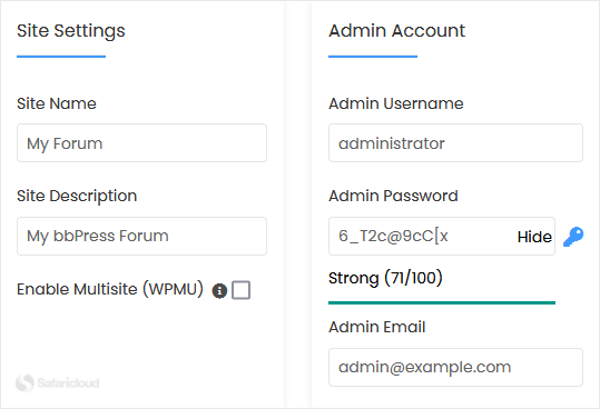- Admin Username: Your new bbPress username (for security reasons, do not use the administrator or the admin username).