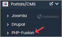 4. On the left side, locate the Portal/CMS category. Click on it and then on the PHP-Fusion link that appears.