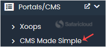 4. On the left side, locate the Portal/CMS category. Click on it and then on the CMS Made Simple link that appears.