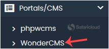 4. On the left side, locate the Portal/CMS category. Click on it and then on the WonderCMS link that appears.