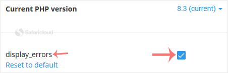 4. For enabling display_errors, tick mark it. For disabling it, uncheck it.